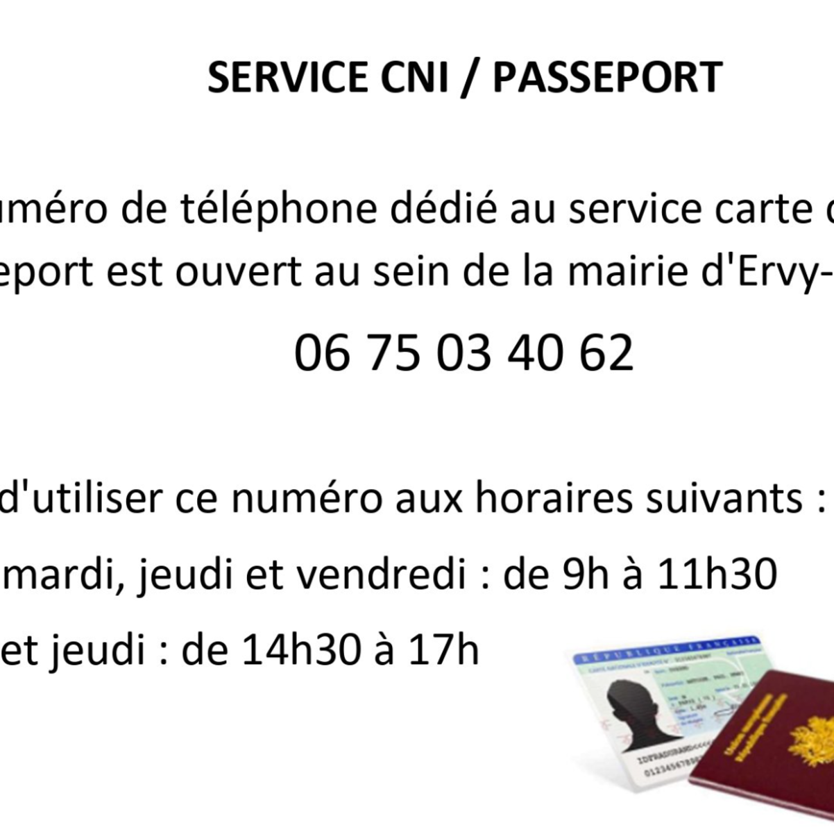 Un numéro de téléphone dédié au service carte d'identité / passeport a été ouvert au sein de la mairie d'Ervy-le Châtel : 06 75 03 40 62